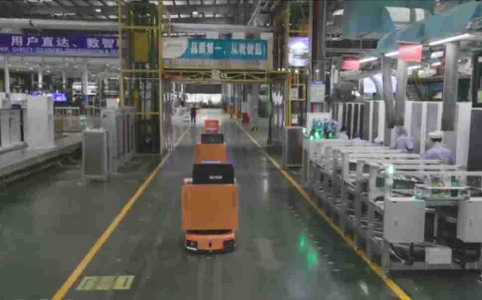 为车载冰箱物流配送打造的智能解决方案,,,包含产中物流通过潜伏举升AMR搬运至线边,,产后成品物流智能仓储,,,流程包含产中物流智能齐套入库,,,,线边安灯叫料AMR智能配送至线边,,,,成品入库、、、、出库,,,通过无人堆高车机器人,,智能仓储管理替代人工作业管理,,实现更高存储、、、更高效率、、、、更具柔性化的解决方案。。。